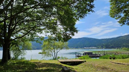 2025/08/14 「余呉湖」です!琵琶湖の北側にある湖で、賤ケ岳で琵琶湖と隔てられています。湖面が穏やかなので「鏡湖」とも呼ばれるそうですが、その通り、静けさの中に佇む美しい湖です。素晴らしい!レンタル自転車で湖岸を回ることが出来ます。賤ケ岳は、次回に。 |