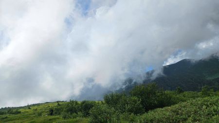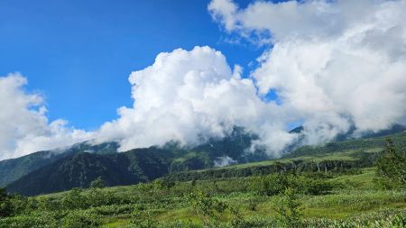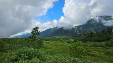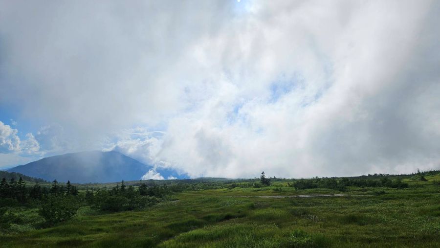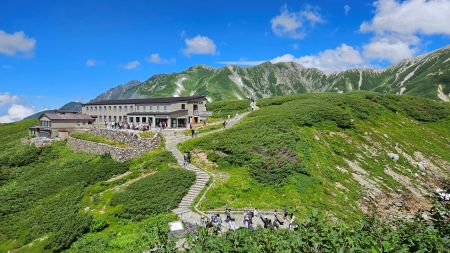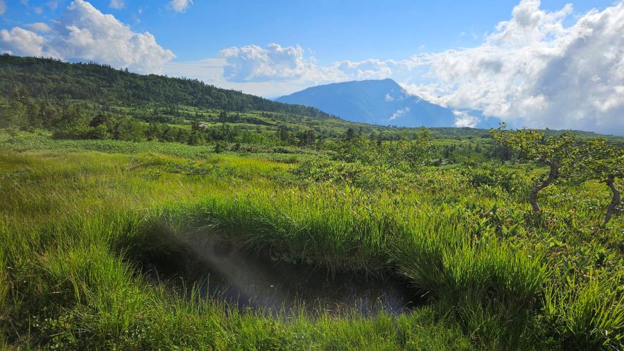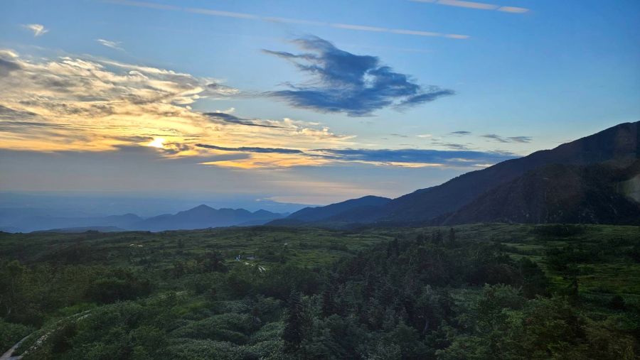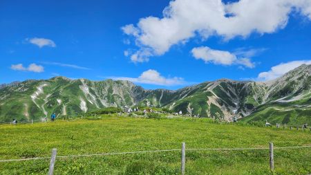 2025/08/16 室堂から少し下りて「弥陀ヶ原」で一泊しました。広大で静かな湿原です。木道を歩いていると、蝶々やトンボが足にまとわりついてくるので、空を見上げてしまいました!立山は、なんて素敵なんでしょう。 |