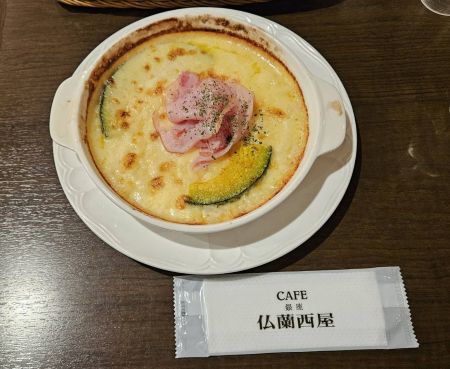 2026/02/13 銀座の仏蘭西屋さんで昼食。銀座に行ったら、必ずここです。以前は、松屋銀座近く(銀座通り)にあった「カフェド銀座みゆき館」や「Tops」に通っていましたが、どちらも2022年頃に閉店してしまいました。最近「みゆき館」アトレ吉祥寺店へ行って、やっぱり良いなあ〜と思ったので、銀座3丁目店や銀座5丁目店にも行ってみよう!と思っています。銀座って、いろいろなお店が集中しているせいか、行動する範囲が意外と狭くて、私は銀座3丁目から京橋方向への、銀座通りの松屋銀座、三越側で動いています。道路を渡るのが、何となく面倒なのかも。 そんなこんなで、仏蘭西屋さんの「生ハムとかぼちゃのドリア」です。紅茶の写真は撮り忘れました〜\(^_^)/ |