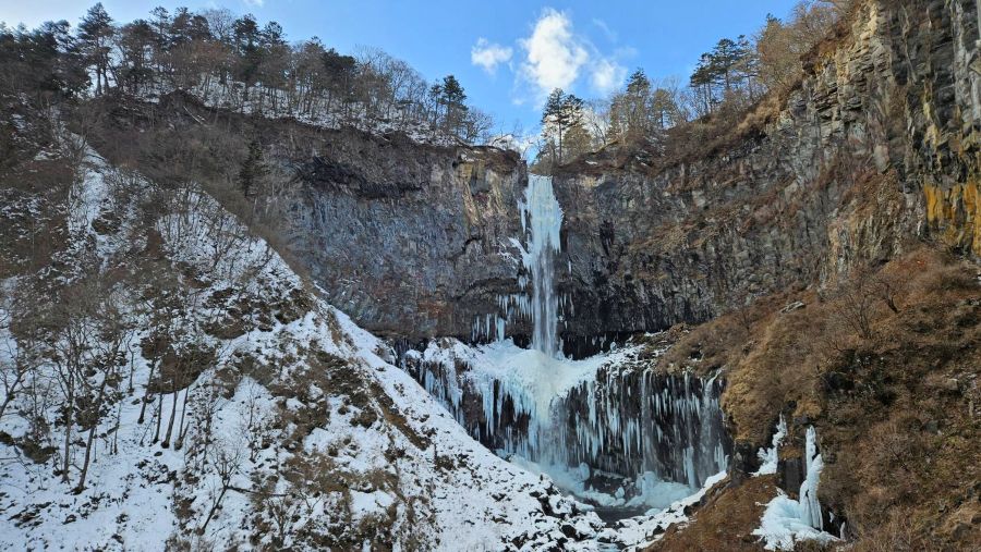 2026/02/04 日光といえば「華厳の滝」!!ものすごく寒くてちょっと躊躇いましたが、やはりエレベーターで100メートル降りなくちゃ。行って良かった。完全には氷っていなくても、氷瀑を堪能できました。この季節だからこそ!です。 |