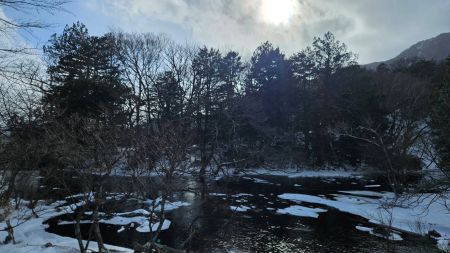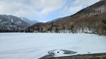2026/02/01 湯元温泉からすぐ近くの「湯ノ湖」です。こんなにステキな湖があるとは、知りませんでした。私にとって日光は、子供の時から何度も訪れている大切な場所なのに、湯ノ湖のことをちゃんと認識していませんでした。このあたりには「地吹雪に注意」の看板があったので、雪が舞い散る様が湖の美しさを際立たせているのかもしれません。こういう景色を見ることが出来て、ほんとうに良かった。 |